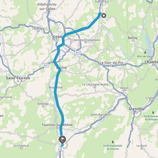 Prendre à droite et rejoindre A7. Continuer sur 87 kilomètres