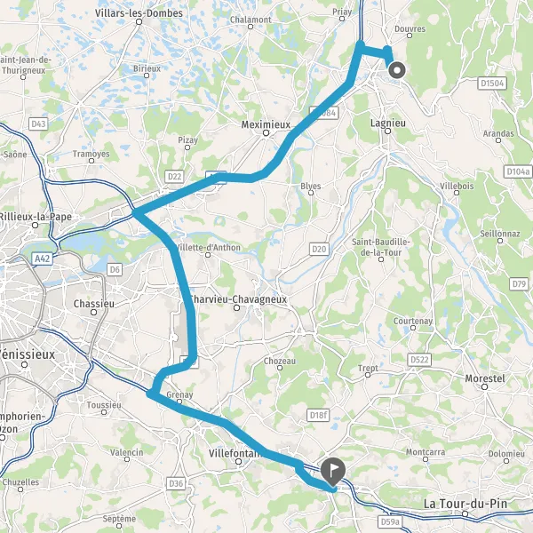 Prendre à gauche et rejoindre A42. Continuer sur 30 kilomètres