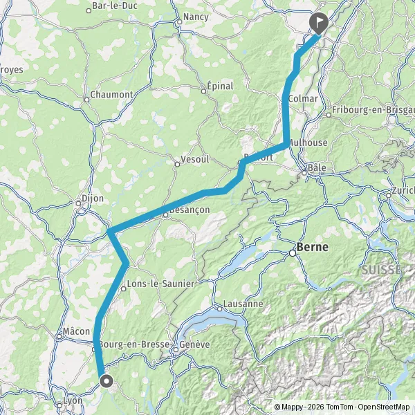 | Distance en voiture | 398 km à 454 km |
