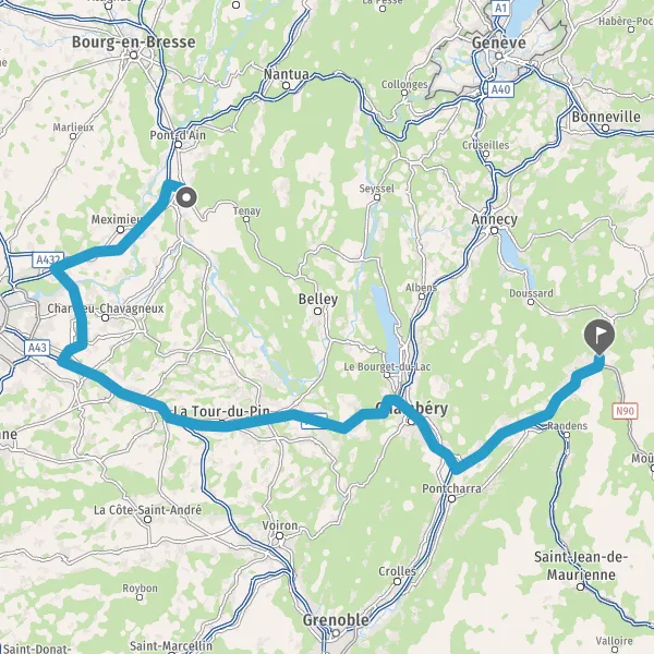 Prendre à droite et rejoindre A43. Continuer sur 19 kilomètres
