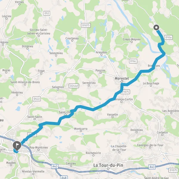Tourner à gauche sur D60a (Route de Morestel) et continuer sur 4,8 kilomètres