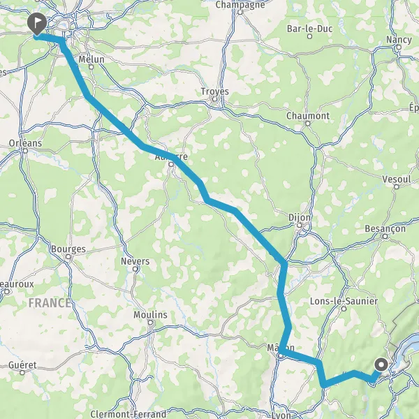 Prendre à droite et rejoindre A6. Continuer sur 294 kilomètres
