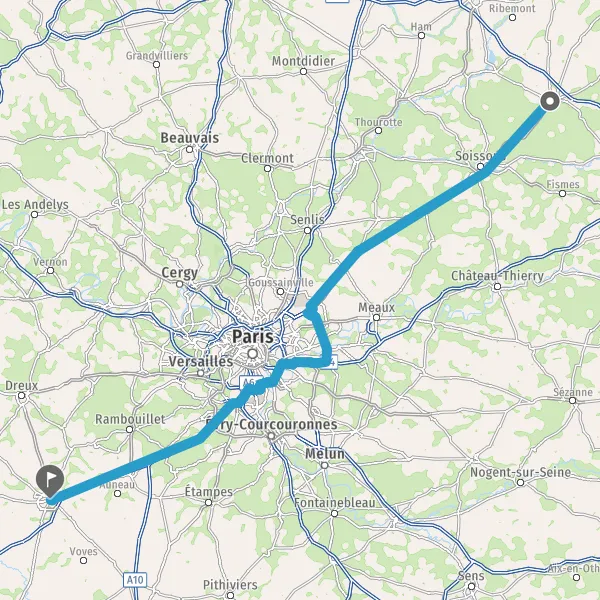 Prendre à droite et rejoindre A10. Continuer sur 34 kilomètres