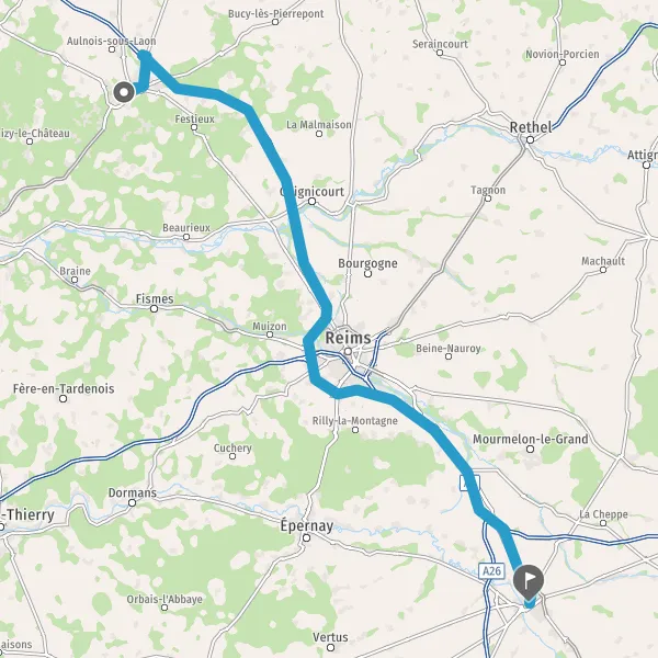Prendre à gauche et rejoindre A26. Continuer sur 54 kilomètres