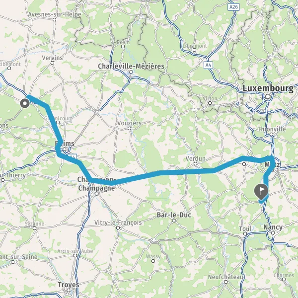 Prendre à gauche et rejoindre A26. Continuer sur 54 kilomètres