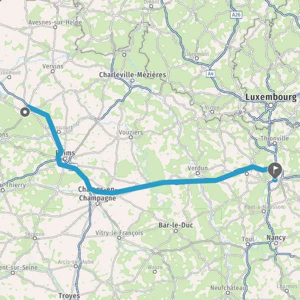 Prendre à gauche et rejoindre A26. Continuer sur 54 kilomètres