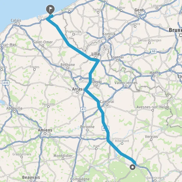 Prendre à droite et rejoindre A26. Continuer sur 103 kilomètres