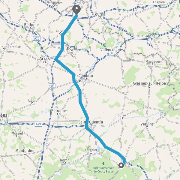 Prendre à droite et rejoindre A26. Continuer sur 103 kilomètres