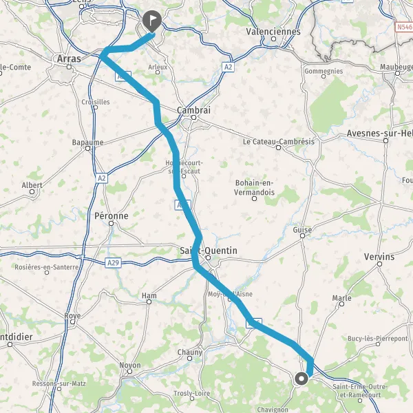 Prendre à droite et rejoindre A26. Continuer sur 103 kilomètres