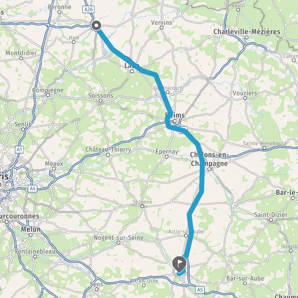 Prendre à droite et rejoindre A26. Continuer sur 75 kilomètres