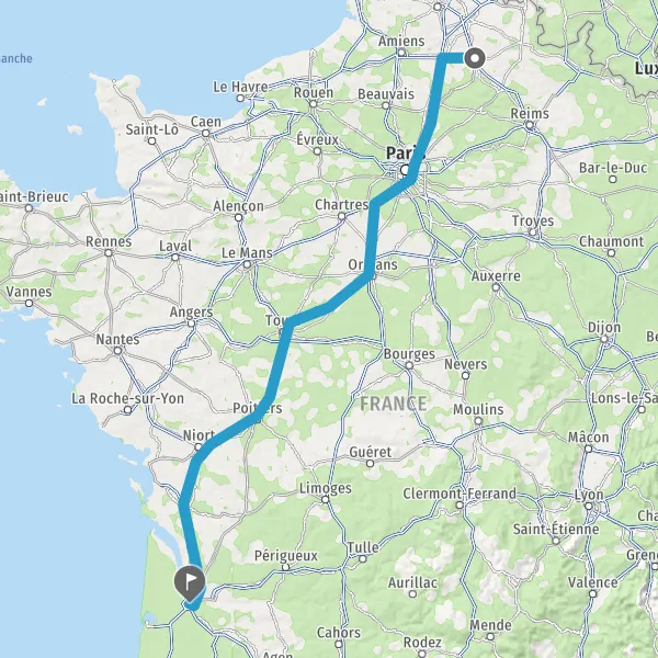 Continuer E5 (L'Aquitaine) sur 516 kilomètres