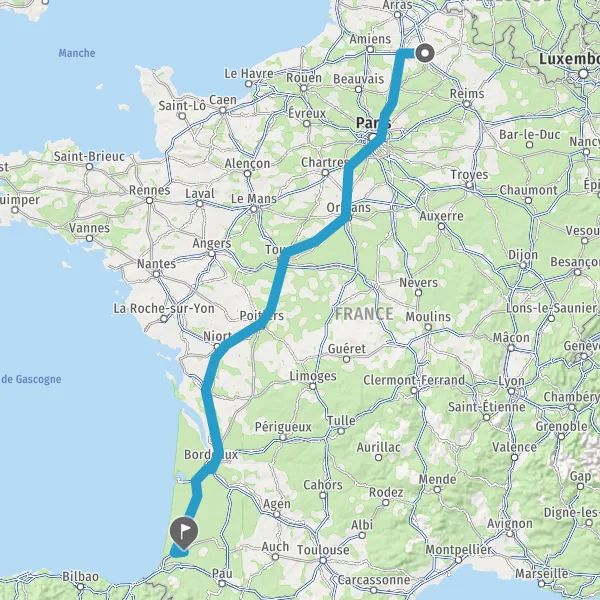 Continuer E5 (L'Aquitaine) sur 516 kilomètres