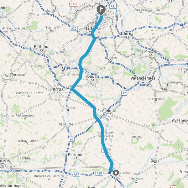 Prendre à droite et rejoindre A26 E17. Continuer sur 60 kilomètres