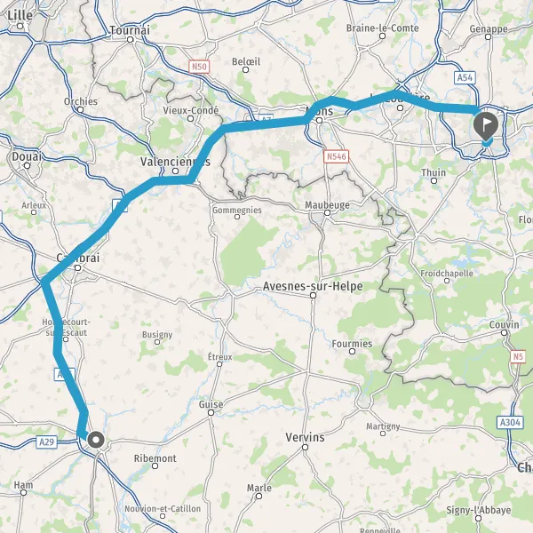 Prendre à droite et rejoindre A26 E17. Continuer sur 33 kilomètres
