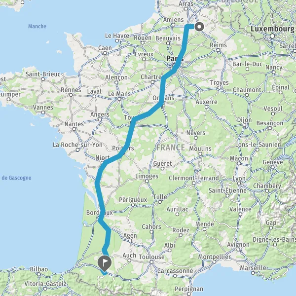 Prendre à droite et rejoindre A65. Continuer sur 149 kilomètres