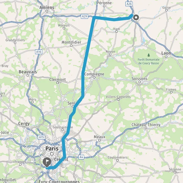 Prendre à droite et rejoindre A29 E44. Continuer sur 31 kilomètres