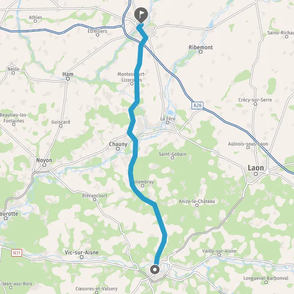 Au rond-point, prendre la 2ème sortie sur D1 (Avenue de Coucy) et continuer sur 7,2 kilomètres