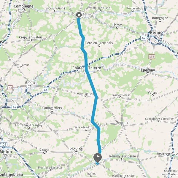 Au rond-point, prendre la 1ère sortie sur Route de Château-Thierry et continuer sur 4,4 kilomètres