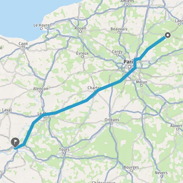 Prendre à droite et rejoindre A11 E50. Continuer sur 147 kilomètres