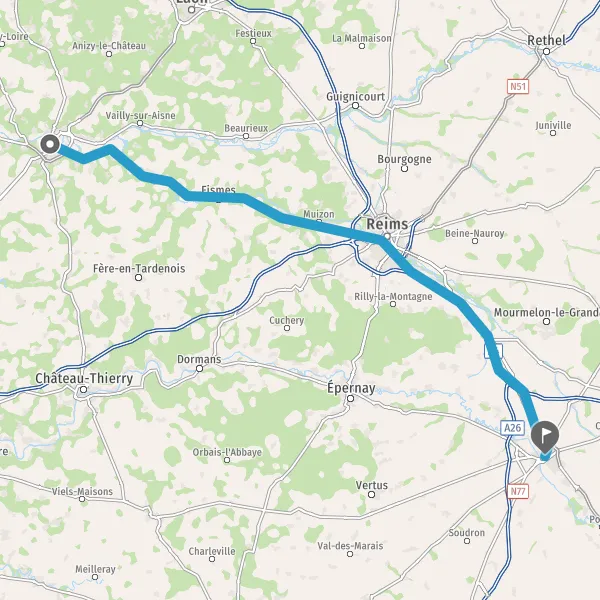 Au rond-point, prendre la 1ère sortie sur N31 (Route de Reims) et continuer sur 2,4 kilomètres