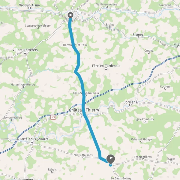 Au rond-point, prendre la 1ère sortie sur Route de Château-Thierry et continuer sur 4,4 kilomètres