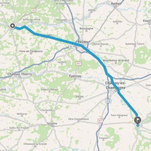Au rond-point, prendre la 1ère sortie sur N31 (Route de Reims) et continuer sur 2,4 kilomètres