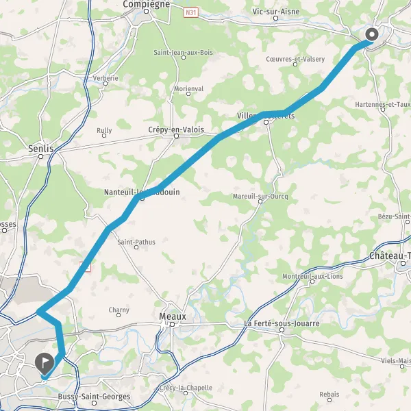 Au rond-point, prendre la 2ème sortie sur D34 (Route de Chelles) et continuer sur 2,4 kilomètres