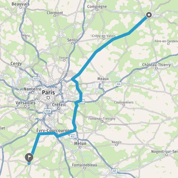 Prendre à droite et rejoindre A104. Continuer sur 19 kilomètres