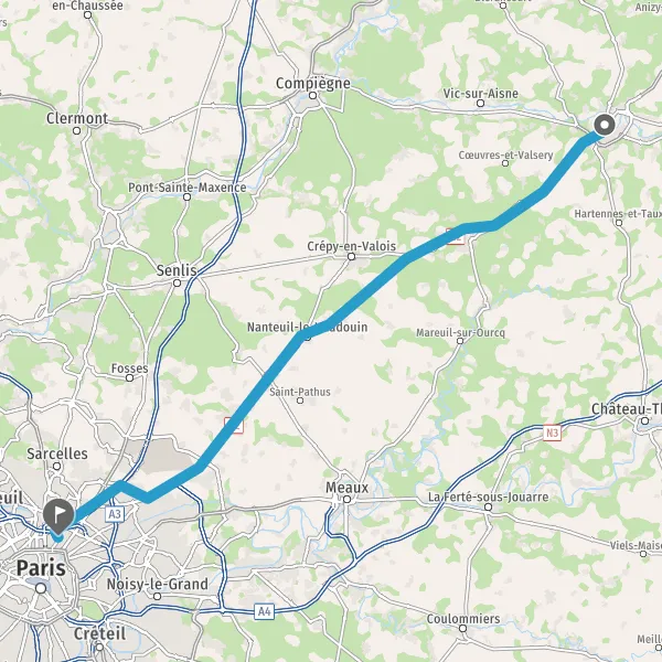 Sortir et rejoindre D27 (Rue Saint-Denis). Continuer sur 350 mètres