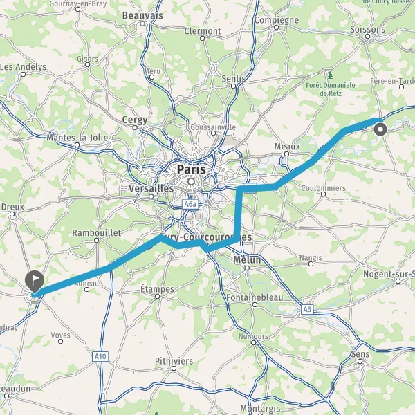 Prendre à droite et rejoindre A10. Continuer sur 7,9 kilomètres