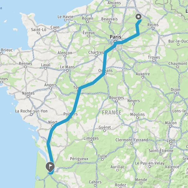 Continuer E5 (L'Aquitaine) sur 516 kilomètres