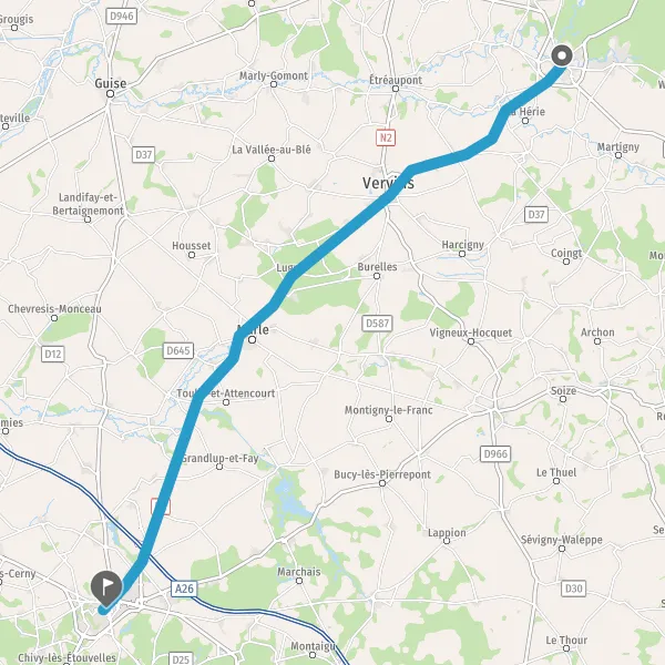 Tourner légèrement à droite sur D963 (Rue de Vervins) et continuer sur 650 mètres
