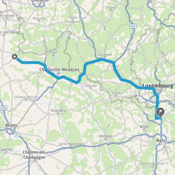 Prendre à droite et rejoindre A4 E411. Continuer sur 57 kilomètres