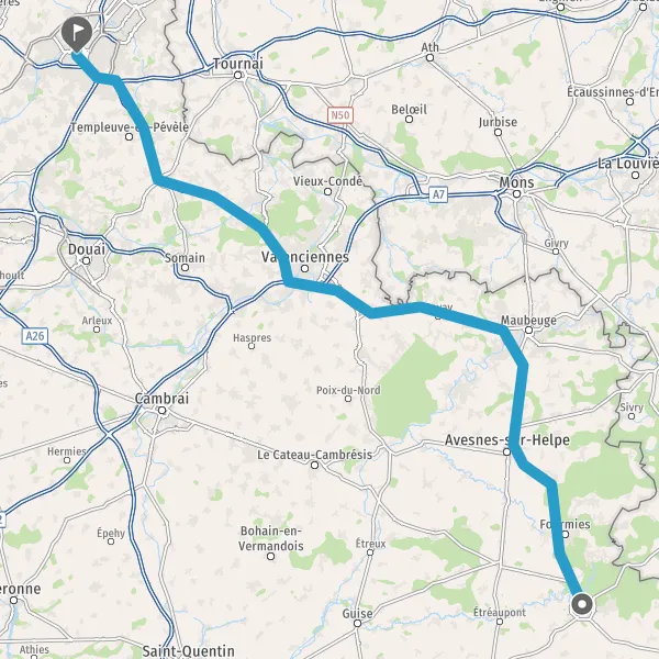 Au rond-point, prendre la 2ème sortie sur D649 (Route de Valenciennes) et continuer sur 28 kilomètres