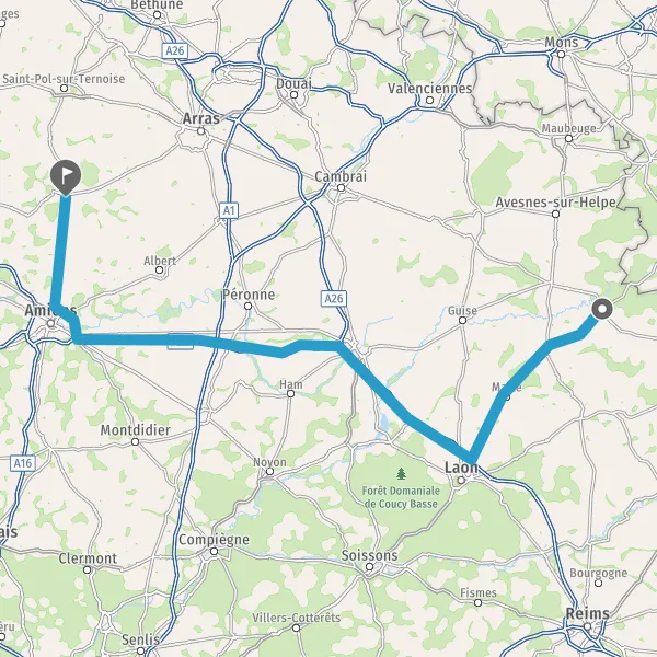 Prendre à droite et rejoindre A26. Continuer sur 1 kilomètre