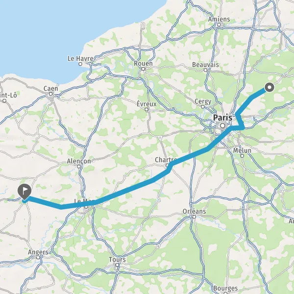 Prendre à droite et rejoindre A11 E50. Continuer sur 147 kilomètres