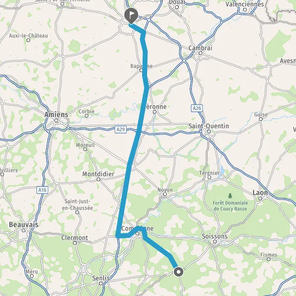Tourner légèrement à droite sur D973 (Route de Compiègne) et continuer sur 17 kilomètres