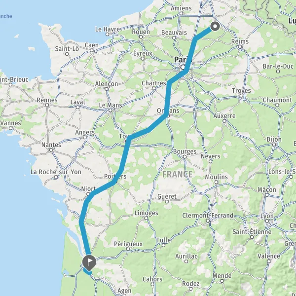 Continuer E5 (L'Aquitaine) sur 516 kilomètres