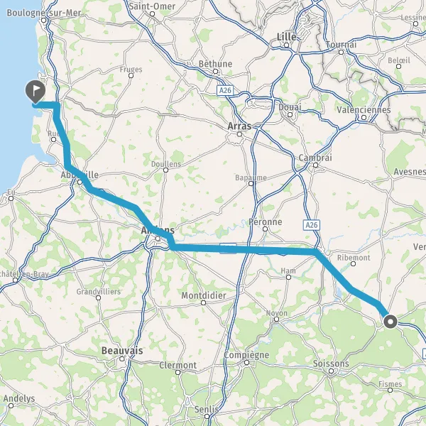 Prendre à droite et rejoindre A26. Continuer sur 41 kilomètres