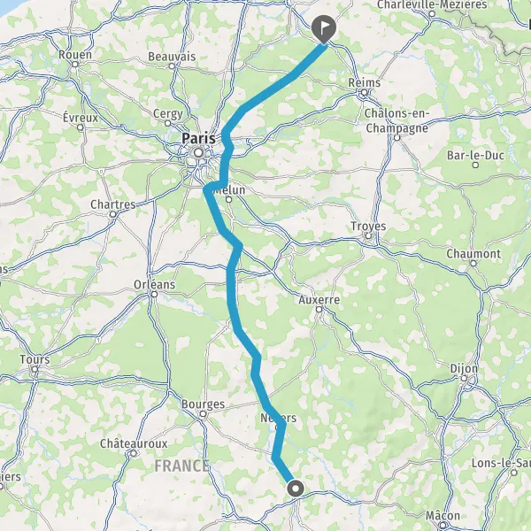 Tourner légèrement à droite sur N7 (Route de Paris) et continuer sur 195 kilomètres