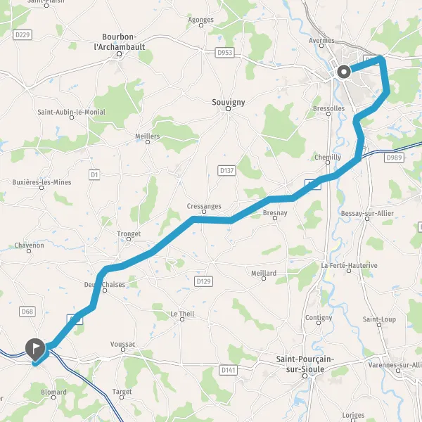 | Distance en voiture | 44,5 km à 55 km |