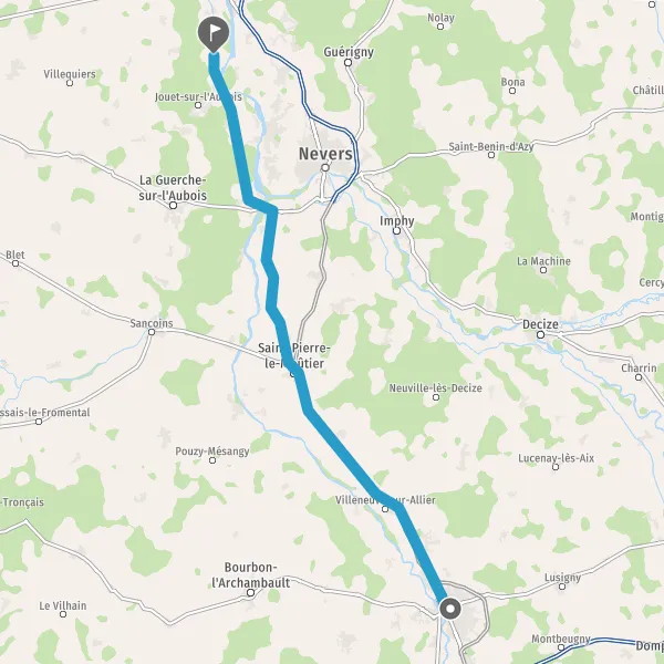 Tourner à droite sur D134 (Route du Veurdre) et continuer sur 3,3 kilomètres