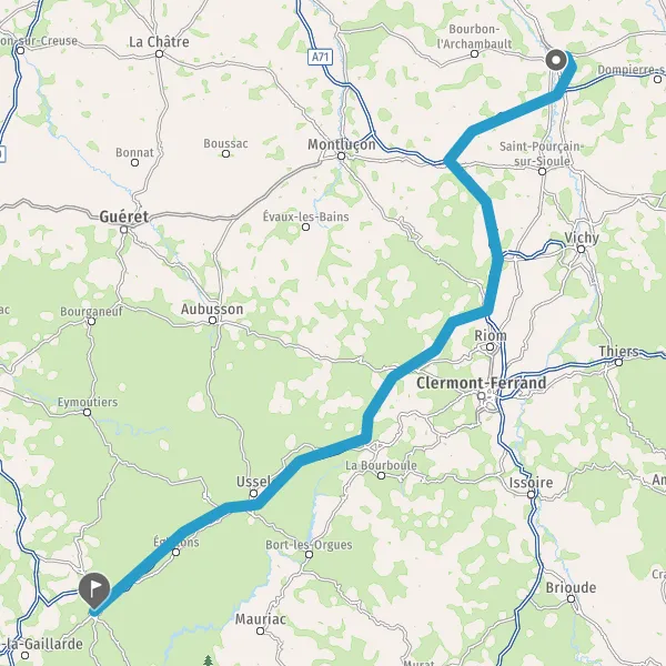 Prendre à droite et rejoindre A89 E70. Continuer sur 134 kilomètres