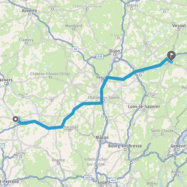 Prendre à droite et rejoindre A36. Continuer sur 92 kilomètres