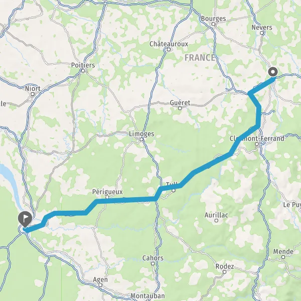 Prendre à droite et rejoindre A89 E70. Continuer sur 160 kilomètres
