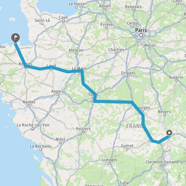 Prendre à droite et rejoindre A85 E604. Continuer sur 105 kilomètres