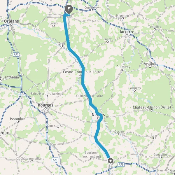 Tourner légèrement à droite sur N7 (Route de Paris) et continuer sur 166 kilomètres
