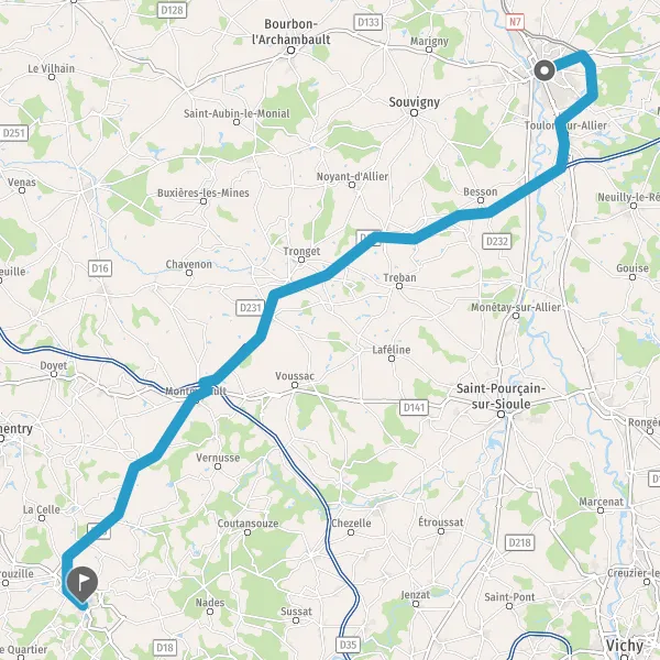 Prendre à gauche et rejoindre A79 E62. Continuer sur 37 kilomètres