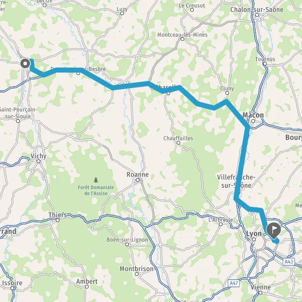 Prendre à droite et rejoindre A79 E62. Continuer sur 45 kilomètres