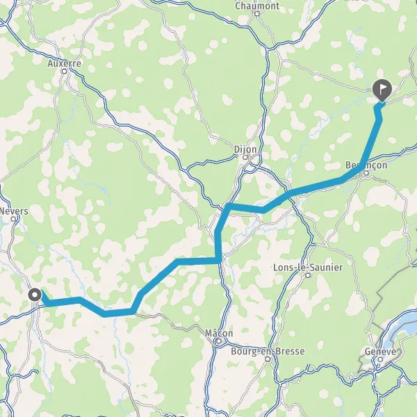 Prendre à droite et rejoindre A36. Continuer sur 92 kilomètres
